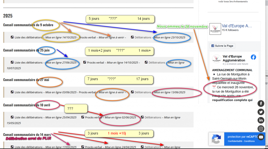 Petite visite sur le site de la Communauté d'Agglomération VEA pour connaitre les délibérations récentes et les mêmes reproches: