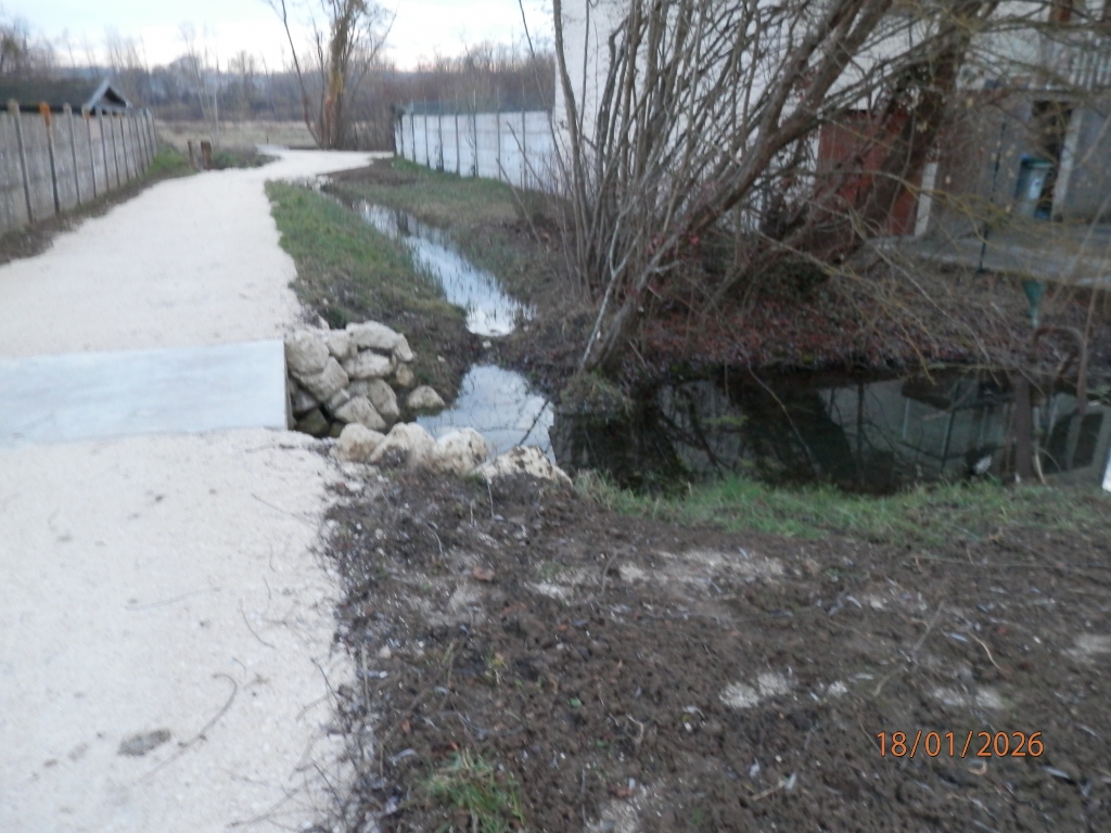 La grosse canalisation enfouie à l'arrière des terrains riverains, espace vert le long de cette allée préemptée il y a longtemps pour procurer un accès aux riverains afin d'éviter l'entrée sortie sur la rue d'Esbly, et transformé en parking du "lac" désormais "des pécheurs", à donc son explication :